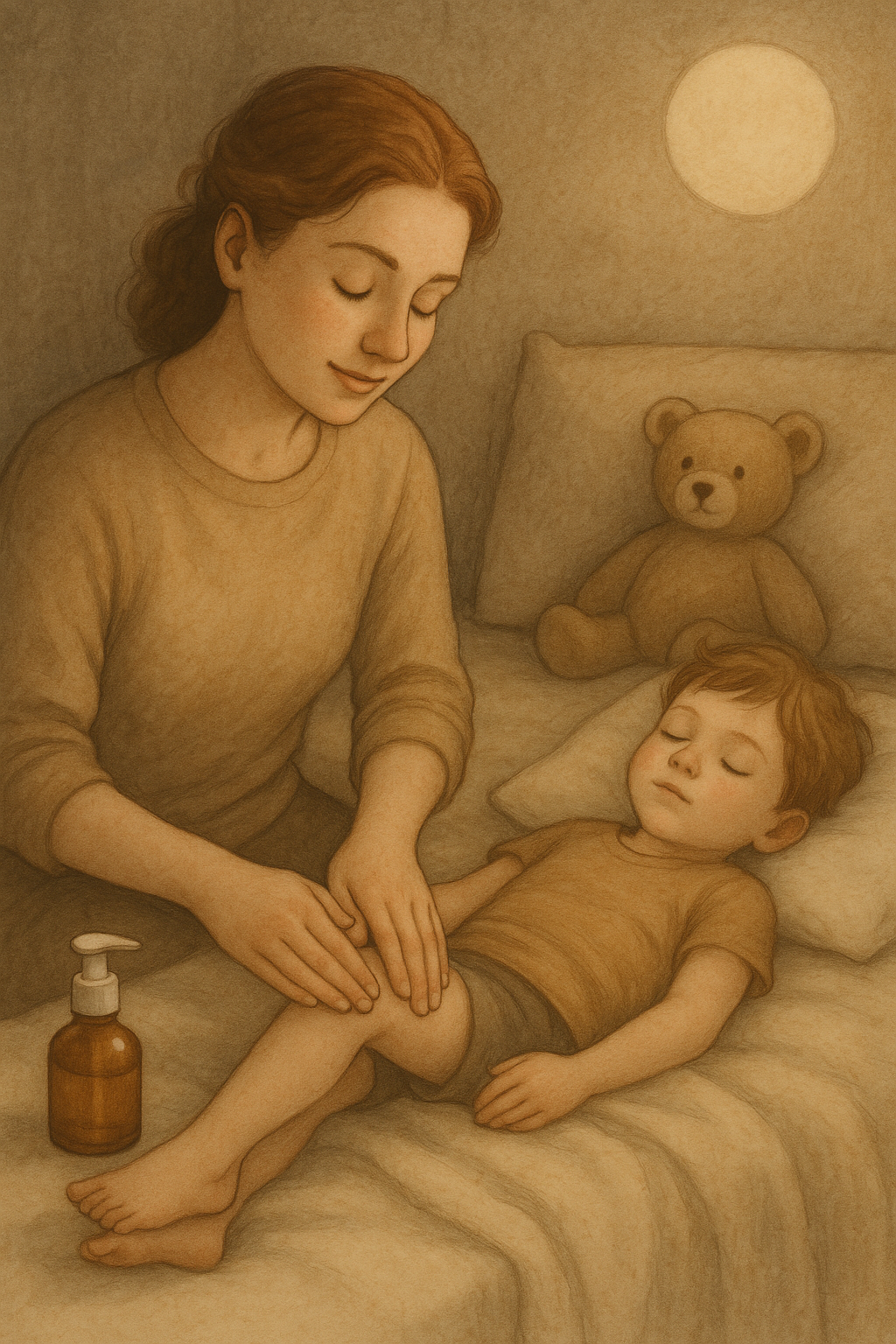Die typische avondmomentjes waarop je kind klaagt over pijnlijke benen of spieren… groeipijn hoort erbij, maar het hoeft niet ongemakkelijk te zijn 💛