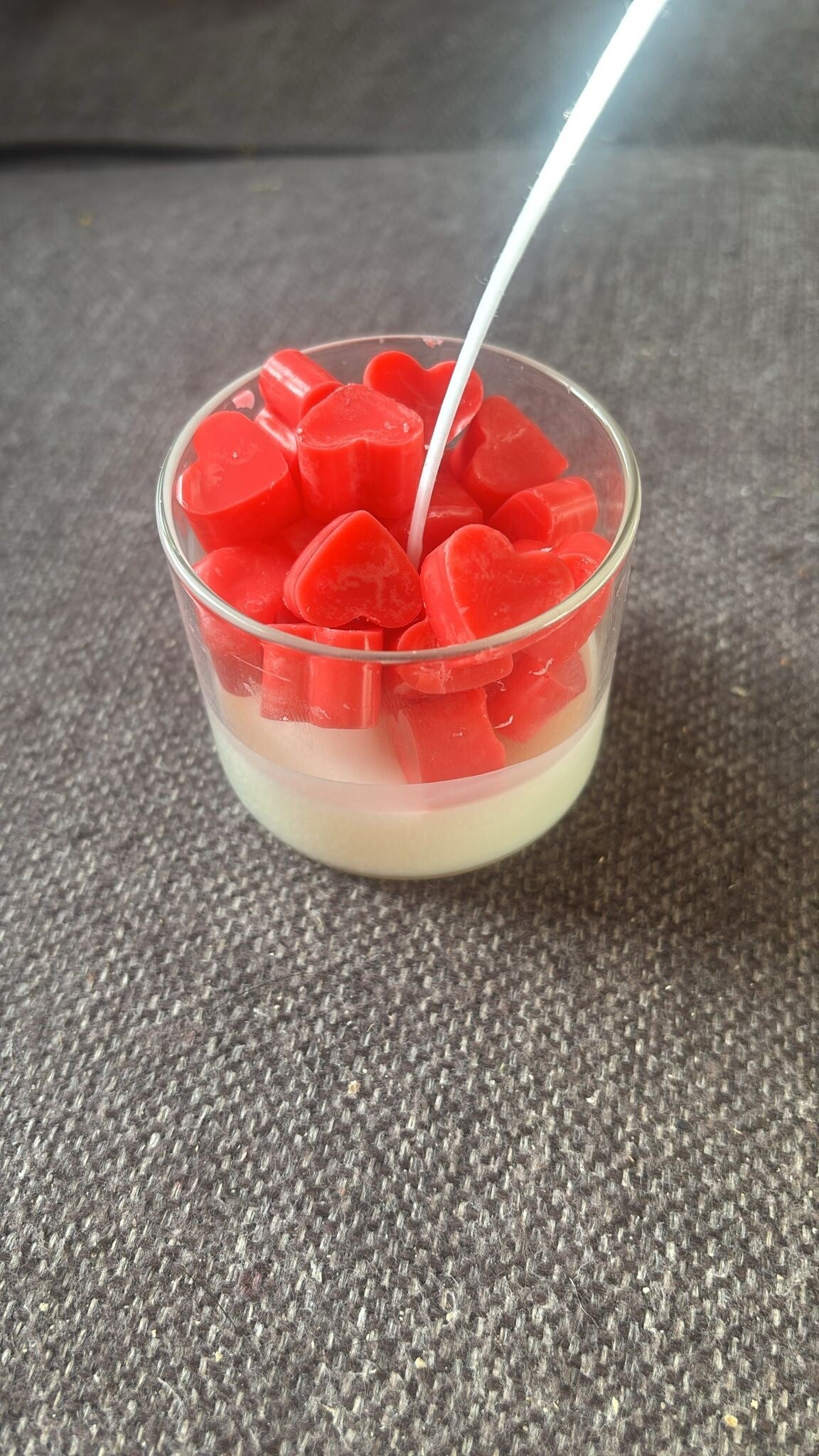 Een leuk kaarsje van zonnebloemwax in een glaasje, met een heerlijke geur van appelbloesem.